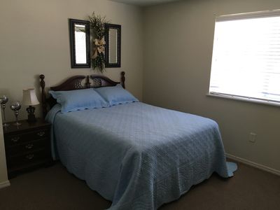 The bedroom includes a beautiful double window view of the local city park or open pasture land.